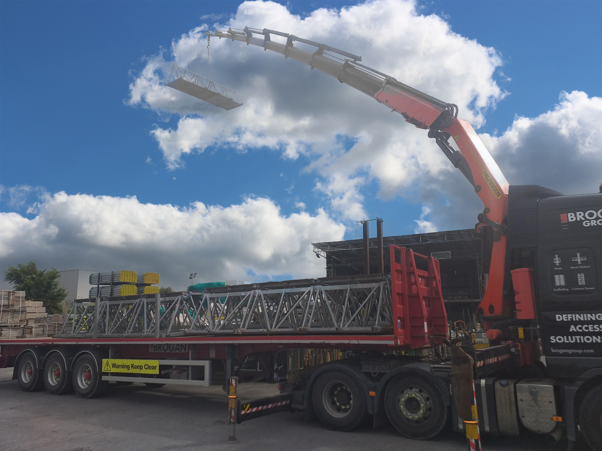 Brogan Group Ireland have taken delivery of a new Volvo Tractor unit with Crane, adding to Brogan’s fleet of Trucks, Trailers, Telehandlers and vans at the 55,000 square-foot yard in Rathcoole, servicing our Scaffolding and Powered Access projects across Ireland.