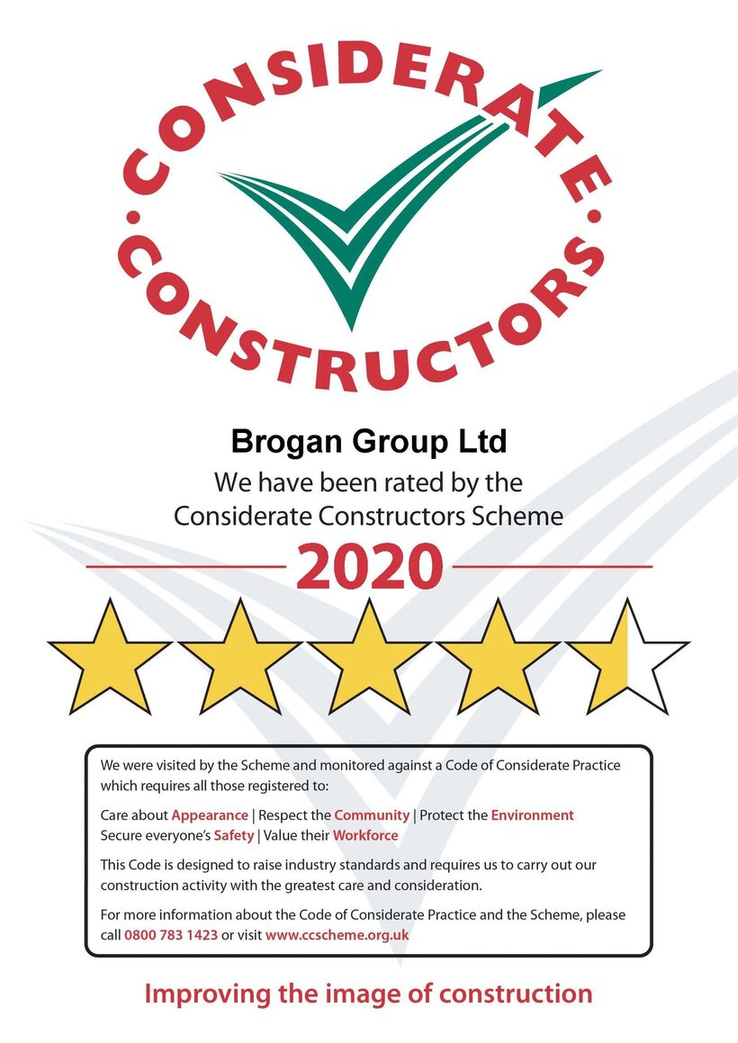 We have yet again achieved high scores and star ratings for the Considerate Constructor Scheme. Having achieved Bronze, Silver and Gold awards in recent years, along with a certificate of excellence last year for our standards in caring for the environment and the people we work with and around, we are delighted to have yet again been bestowed this prestigious honour.