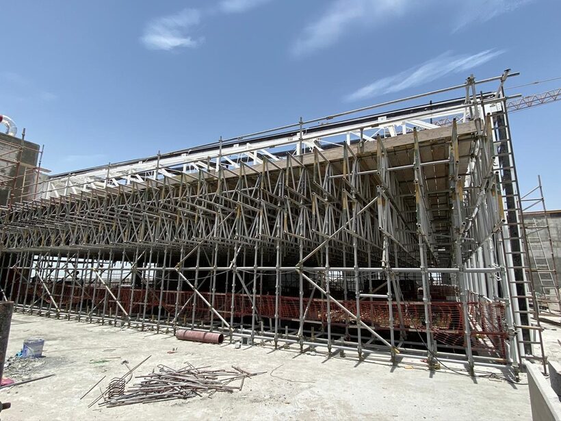 This $15 million project involves construction of an Academy consisting of a ground floor, a mezzanine and an additional 6 floors in Abu Dhabi. The client requested an access solution for cladding works of a skylight with a 25 meter clear span without ties and with a high loading capacity for materials. Our in house design team came up with a design solution using double stacked Ubix aluminum beams.